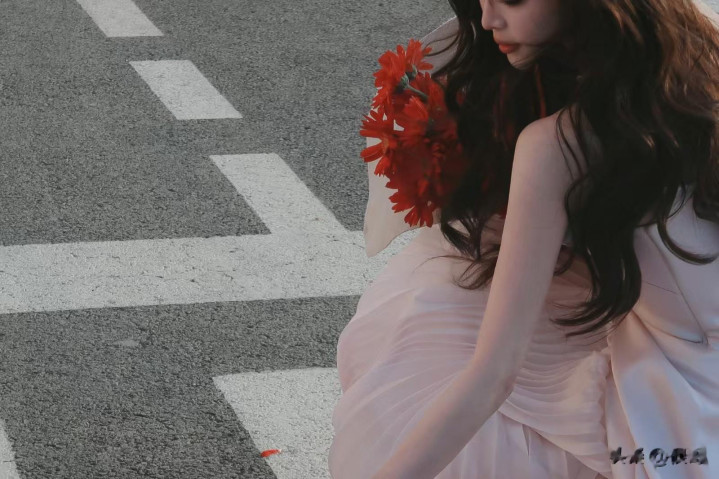 上半身采用修身设计,勾勒出纤细腰肢,领口的立体花朵装饰增添了几分少女感,搭配同色系粉色高跟鞋与粉色手包,整体造型统一和谐,甜度值直接拉满。她的妆容也与造型完美契合,粉嫩的腮红、自然的唇妆,搭配灵动的卷发,如同从童话里走出来的公主。
