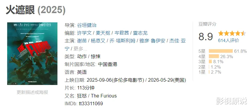 谢苗主演新片《火遮眼》海外口碑大爆,影评人评分满分,最新的好莱坞中国巨星演员将诞生了。