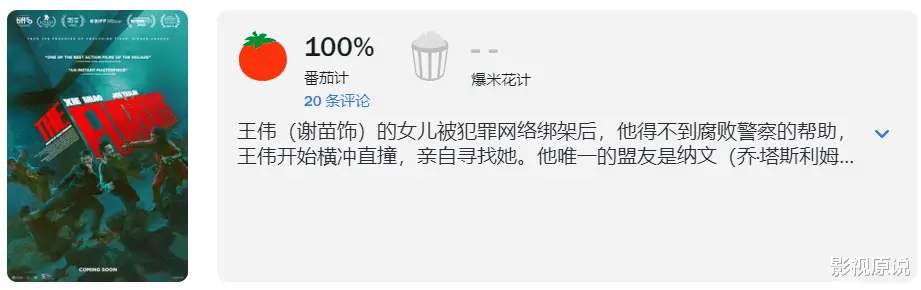 在海外,《火遮眼》的IMBDb评分是7.8分,算得上很优秀。另外它的烂番茄新鲜度更是达到了100%,直接满分。